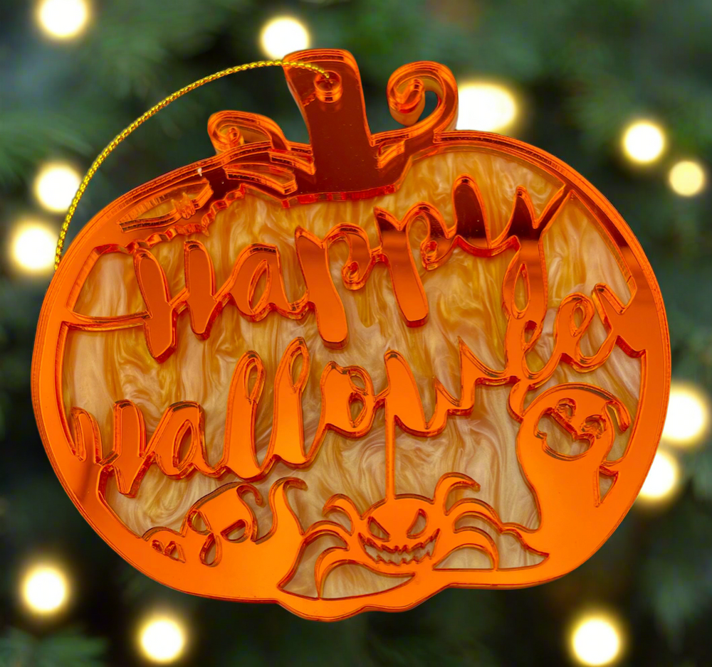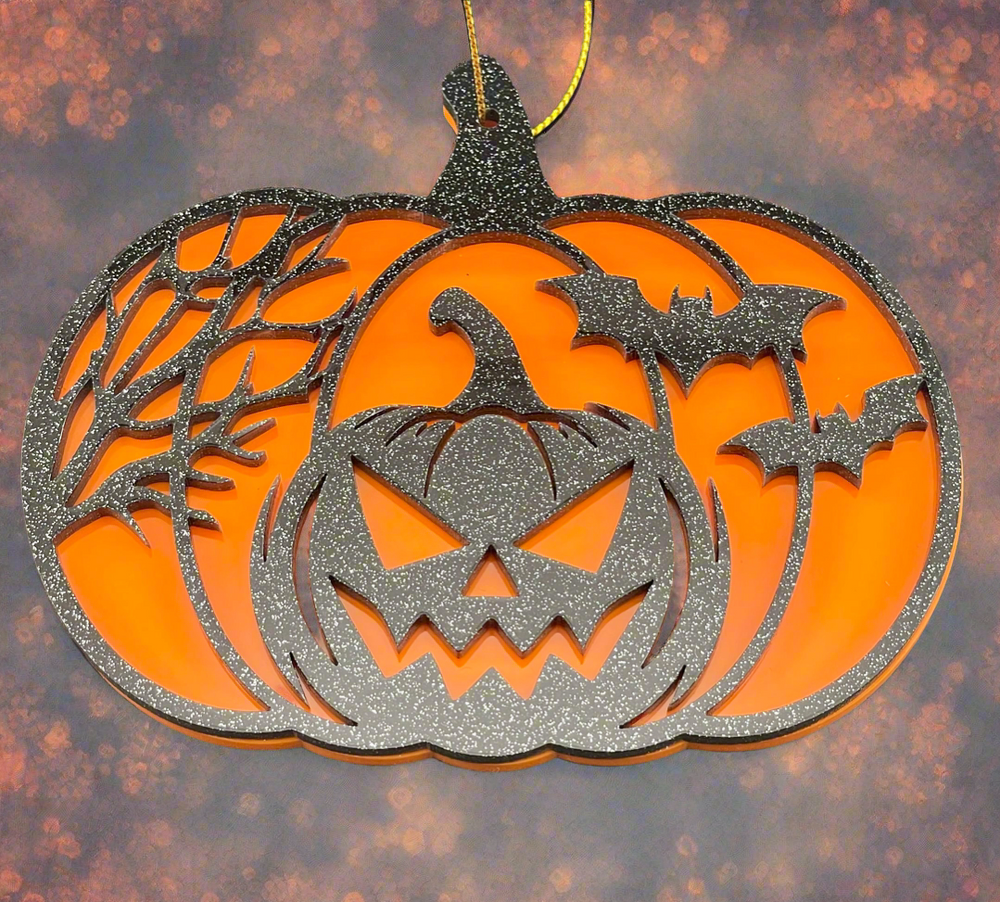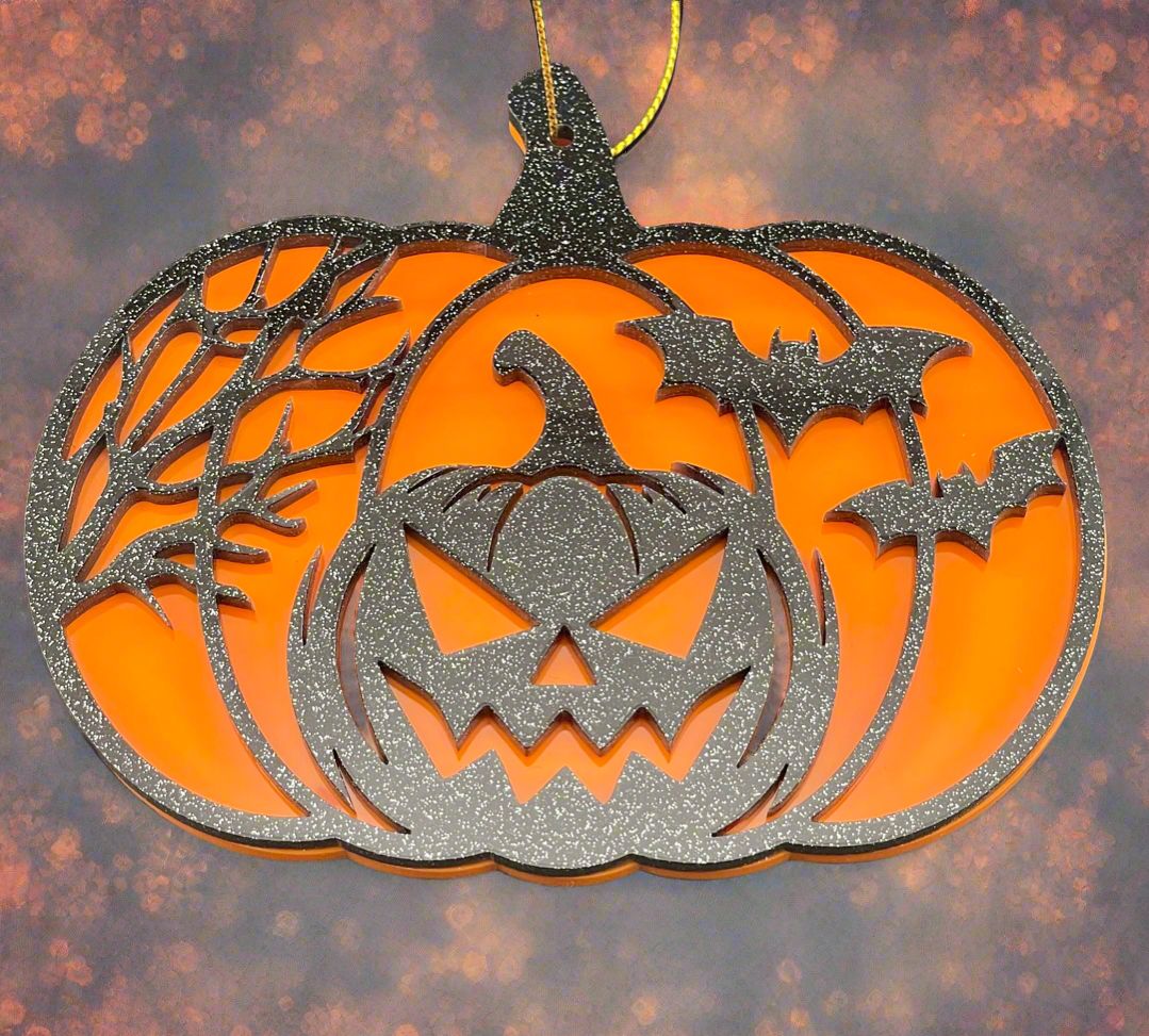 Halloween Pumpkin Ornament - Black Glitter Orange