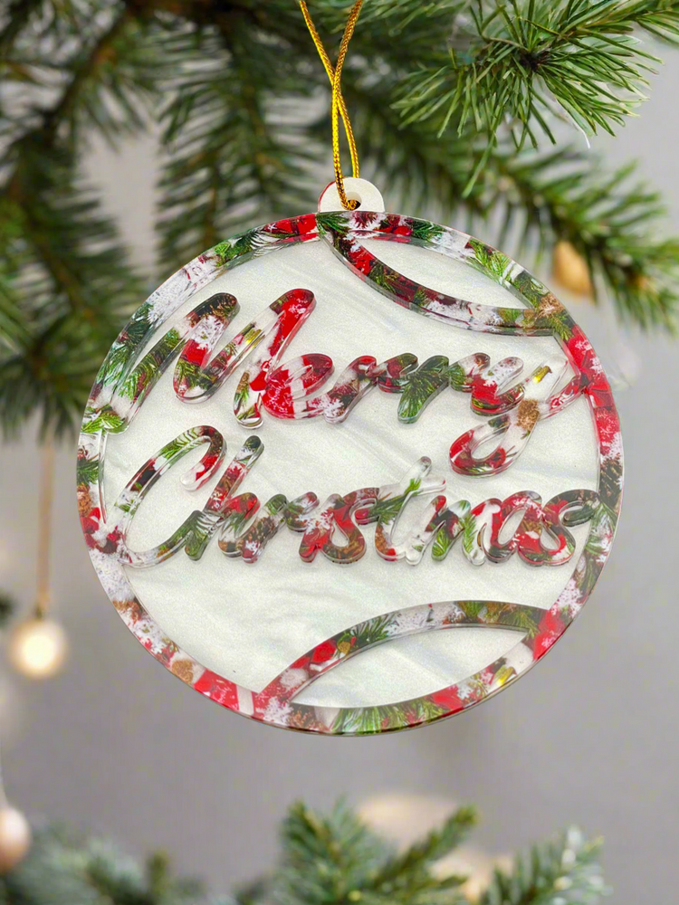 ‘Believe’ Holiday Ornament White Swirl Blue Swirl