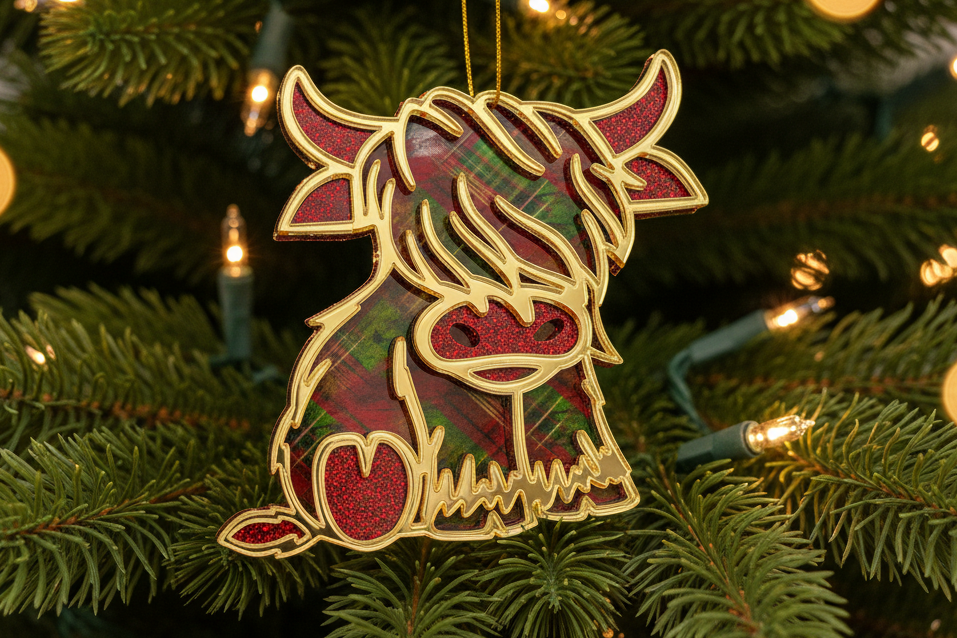 Highland Cow Holiday Ornament - Silver Mirror